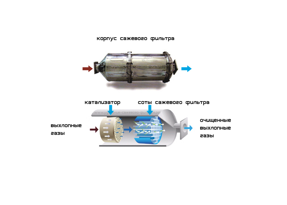 Это устройство представляет собой решетку из специального материала, на которой осаживается большая часть сажи, имеющейся в выхлопных газах. Особенно богаты сажей выхлопы дизельных двигателей. Поэтому в Европе и прошла волна запретов на использование дизельных автомобилей.